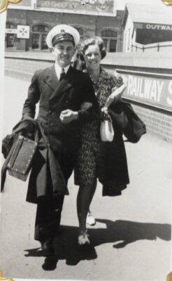 That song also brings in some recollections of my other grandma who also grew up in Sydney but out somewhere closer to Paramatta. That was Ethel Skeet and she married my grandfather Andy Watt. They both were bit older than Nana and served during world war two. Grandma was in the RAAF and was up in Toowomba for some of the war, running training courses on gas – chlorine gas and mustard gas. There was a risk it might be used and they used to go into a room with gas masks on and then briefly take the mask off to experience the gas, just so they could recognise it I suppose. Grandma really hated the mustard gas in particular. While she was there she got to know all the airmen including famous ace Bluey Truscott. Meanwhile grandad was on a ship, the HMAS Ipswich and spent a lot of time around the mediterranean and the Indian ocean. He kept a war diary and was there during the battle of Naples and he witnessed a fair bit of combat, dropping depth charges and rescuing survivors from sinking ships. He also got to see places like Bombay and Colombo and Alexandria and Mombassa – where he caught blackwater fever which nearly killed him and he ended up being discharged from the active duty due to his damaged health. He was a cook on that ship and there’s a funny story he told about getting that job – he was actually in the waiting room to be signed up for the airforce and was expectingto get the job of a gunner on a bomber. Anyway someone came in and said they needed a couple of chefs on a ship and grandad’s life was probably saved by that.